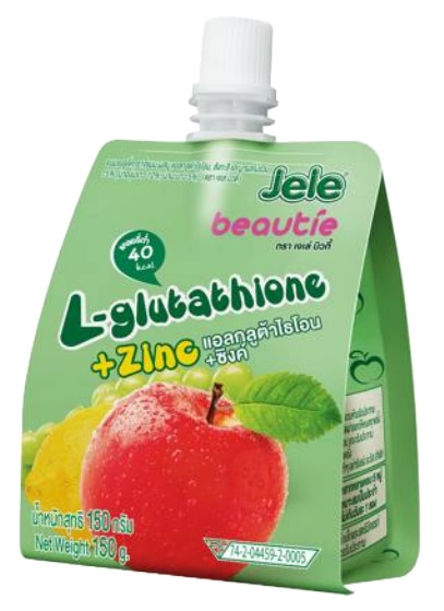 : Вода питьевая 77,9%, восстановленный фруктовый микс из концентрированного фруктового сока 15% (сок винограда 10%, сок лайма 5%), фруктозный сироп 3%, сахар 3%, регулятор кислотности (цитрат калия, яблочная кислота, лимонная кислота), L-глутатион (161,63 мг на 140г, 32% от суточной дозы), желирующее вещество (каррагинан, порошок коньяку), ароматизатор «Яблоко», консервант (бензоат натрия), витамин С (14 мг на 140г, 15,5% от суточной дозы), цинк (4,2 мг на 140г, 38% от суточной дозы).